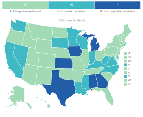 NCJJ has collaborated with the Lowenstein Center for Public Interest to add a topic to the Juvenile Justice Services area concerning solitary confinement in juvenile correctional facilities.  The topic is based on a point-in-time survey and includes state summaries when selecting a state shape. The addition of solitary also is represented in state summary checklists that span dozens of reform topics that enable cross-issue comparisons and with quantitative overlays for juvenile arrest, detention and state commitment trends.